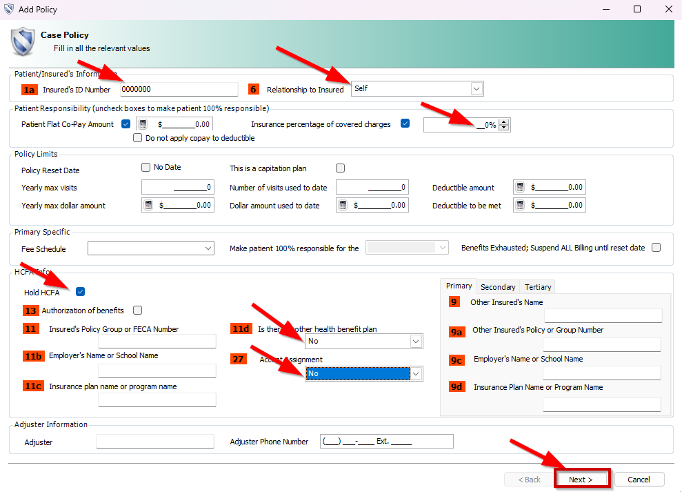 - Insurance ID: Anything you would like to put. SSN, DOB, ACCT Number, etc.