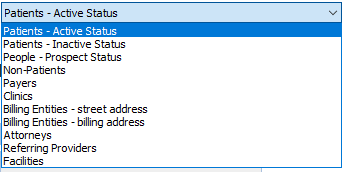 If you would like to create mailing labels for more than one Patient Status(ex. Active & Inactive Patients), please go to Reports>Patient List>Choose multiple Patient Status's>Choose Profile Report or List Report>Next>Choose Mailing Labels box(bottom of screen)