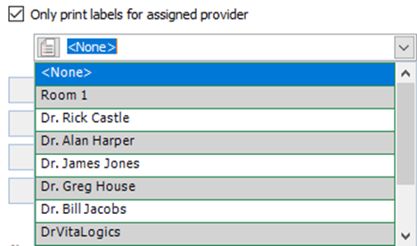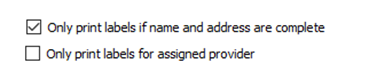 If you select the box to Only print labels for an Assigned Provider, you must select the appropriate Provider from the dropdown.