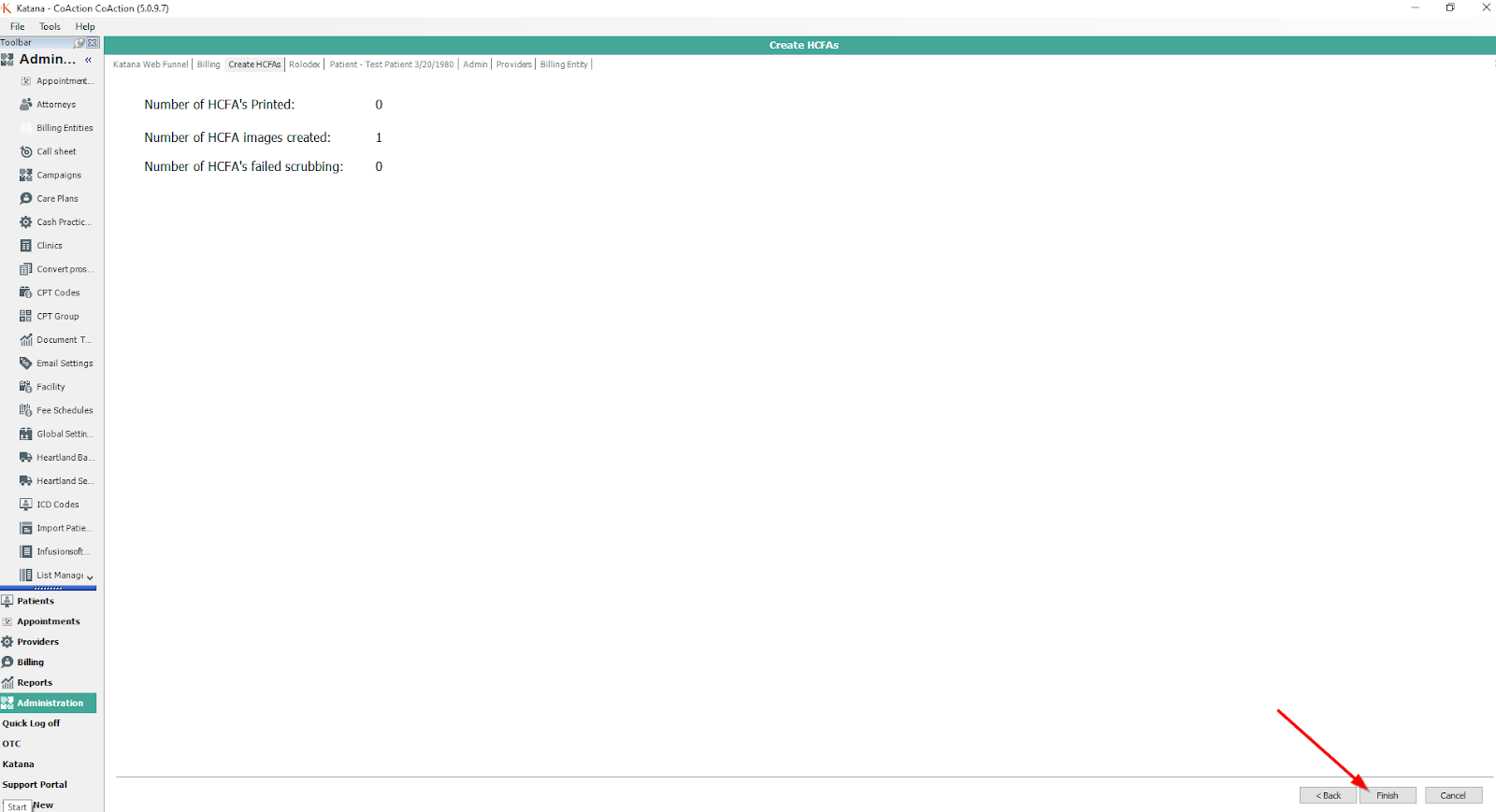 After you close the file folder, you will see the report of how many HCFAs were printed in your software, how many images were generated for Electronic Billing and how many failed scrubbing that still need to be corrected.